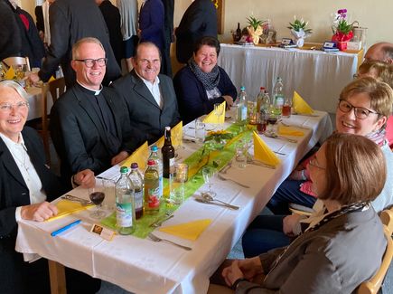 Musikalisch wurde der Gottesdienst festlich gestaltet, von Sr. Karin Müller an der Orgel und Veronika Bruckmeier mit der Trompete. Die Freude des Tages setzte sich im gemeinsamen Mahl und in der Begegnung fort.