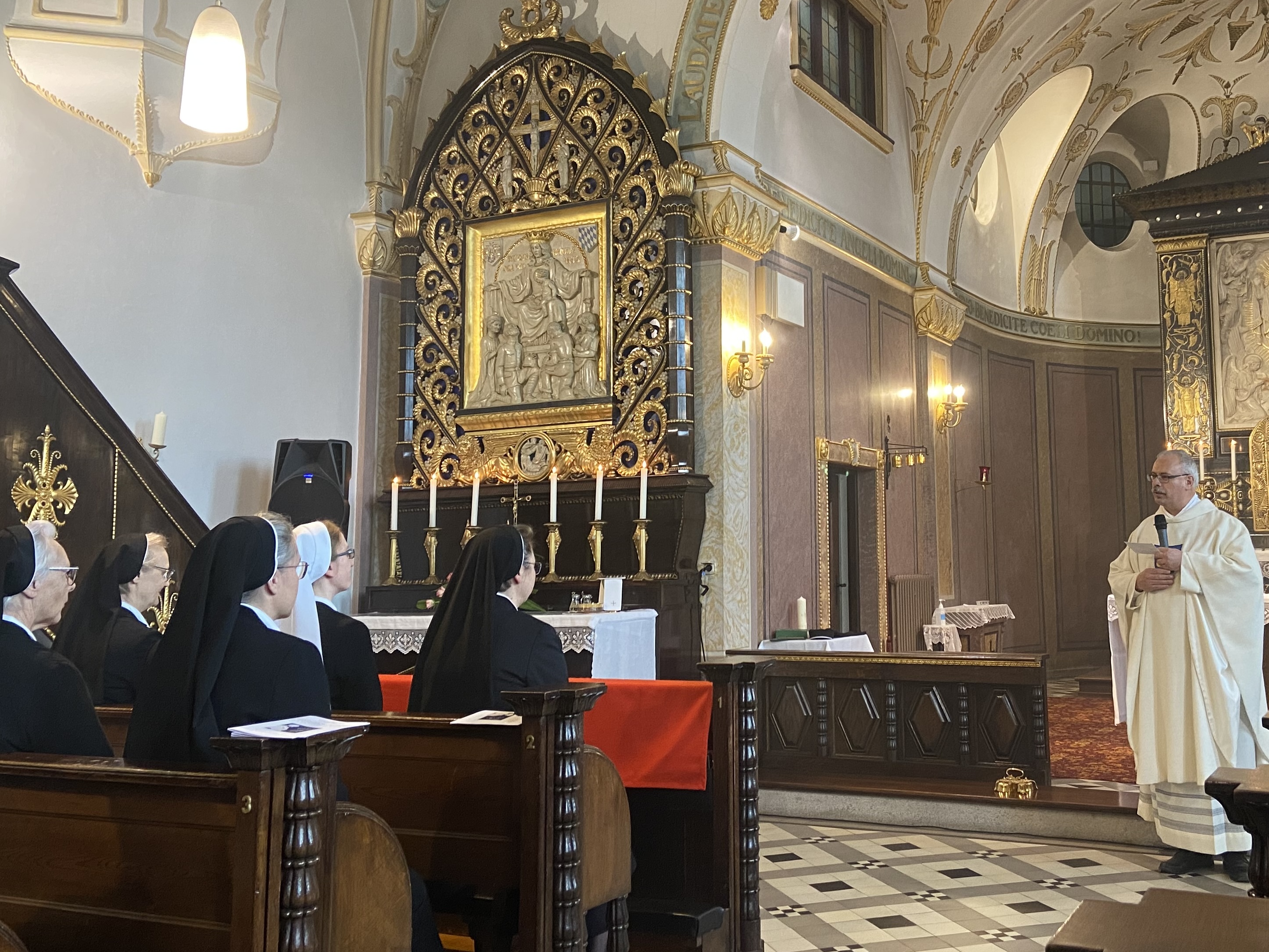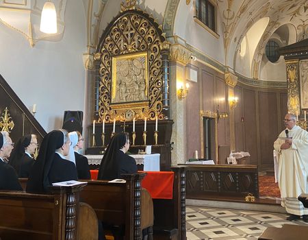 Der Zelebrant, Stadtpfarrer Dr. Klaus Metzl, führte in seiner Predigt die Bedeutung des Wortes „Profess“ aus und stellte den Zusammenhang mit dem Festgeheimnis her. „Profess“ steht auch für „Veröffentlichung“ und „Bekenntnis“. Sie ist also eine öffentliche Verkündigung des Glaubens und ein Zeichen der Hingabe an Gottes Wort. Mariens „Ja-Wort“ zu Gottes Plan für ihr Leben sei für Sr. Janas Ordensleben und für unser aller Leben Ermutigung zur Verkündigung des Wortes Gottes. Mit der Taufe ist uns bereits Gottes Gnade und sein Schutz zugesagt und wir können auch selbst angesichts großer Herausforderungen das Bekenntnis zu Ihm wagen„denn für Gott ist nichts unmöglich“ (Lk 1,37).