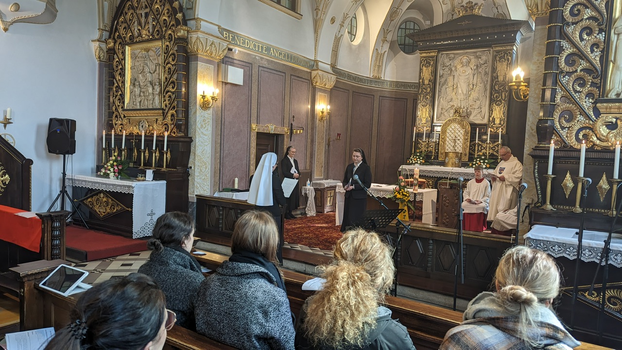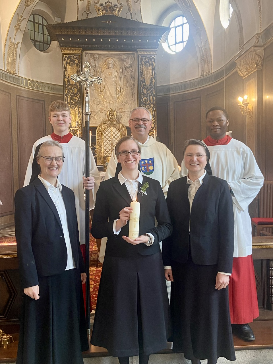 Am 25.03., dem Festtag der Verkündigung des Herrn, legte Sr. Jana Stadler vor der Provinzleiterin Sr. Marika Wippenbeck im Rahmen eines festlichen Gottesdienstes in der Kirche der Schwestern vom Hl. Kreuz in Altötting ihre zeitliche Profess ab.