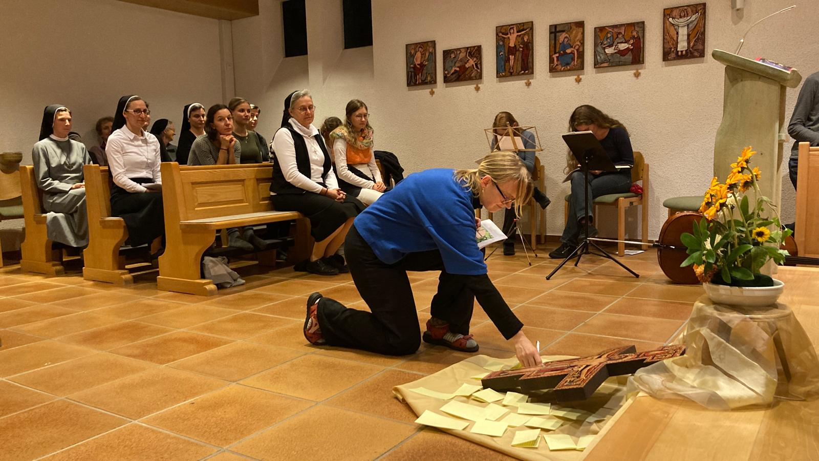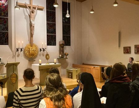 Ein kräftiges „Ich bin bereit“ erklang in der Kirche im Provinzhaus Hl. Kreuz. Damit beantwortete die junge Frau die Fragen des Zelebranten, ob sie bereit sei, sich von Gott für immer in Dienst nehmen zu lassen. Sr. Maria wiederholte ihr „Ich bin bereit“ zu einem Leben in den evangelischen Räten. Sie erklärte sich bereit, das Charisma der Kongregation mitzutragen: die in den Menschen angelegten Begabungen zu fördern, und sich hoffnungsvoll für das Leben einzusetzen.