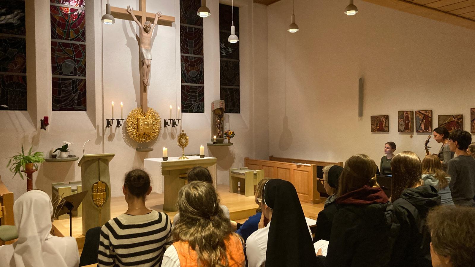 Bereits am Vorabend versammelte sich eine große Gruppe junger Menschen, um sich mit einer Vesper und Anbetung sowie einem Get-together auf die Feier einzustimmen.