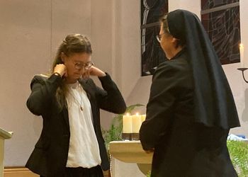 In einer liturgischen Feier wurde Franziska K. von Provinzleiterin Sr. Marika W. in das Postulat der Schwestern vom Hl. Kreuz aufgenommen. Mit dabei waren die Schwesterngemeinschaft, die Eltern von Franziska und befreundete junge Menschen.
