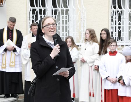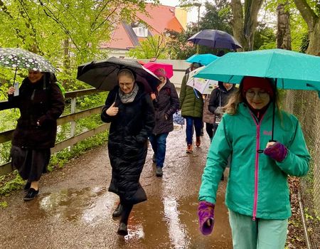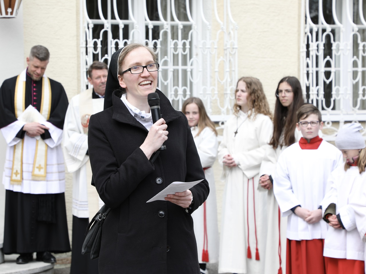 Am 21. April, dem Weltgebetstag für geistliche Berufungen, waren unsere Schwestern unterwegs, um über ihren Berufungsweg Zeugnis zu geben. Eine Gruppe von Schwestern pilgerte zur Korbiniansquelle in Freising und eine andere nahm am diesjährigen Stationenweg des Bistums Passau in Simbach am Inn teil.