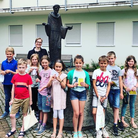 Zur Vorbereitung auf ihre Erstkommunion kamen Kinder in kleinen Gruppen zu uns Schwestern vom Hl. Kreuz nach Altötting.